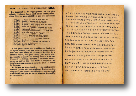1730 wird auf La Réunion, der damaligen «Île Bourbon» der Pirat Olivier Levasseur, genannt «La Buse» gehängt. 204 Jahre später, im Jahr 1934 publiziert der Kurator der französischen Bibliothèque Nationale, Charles de La Roncière ein kleines Buch mit dem Titel «Le flibustier mystérieux». Darin enthalten ist das Bild eines Schriftstücks, das später als «Kryptogramm von La Buse» berühmt wurde. In seinem Buch behauptet der Autor, der Pirat habe das Dokument kurz vor seiner Hinrichtung ins Publikum geworfen mit den Worten «Für den, der es entdeckt.» (Pour celui, qui le découvrira.)